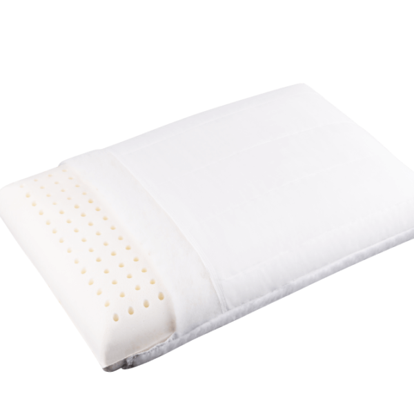 Калъфът е изработен от ранфорс и силиконова вата, а ядрото – от 100% латекс – най-еластичния материал в природата, което не й позволява да се деформира или размества осигурявайки максимална опора за главата и за мускулите на врата по време на сън. Това е ортопедична възглавница, която следва извивките на главата Ви и се нагажда към всяко Ваше движение през нощта.
